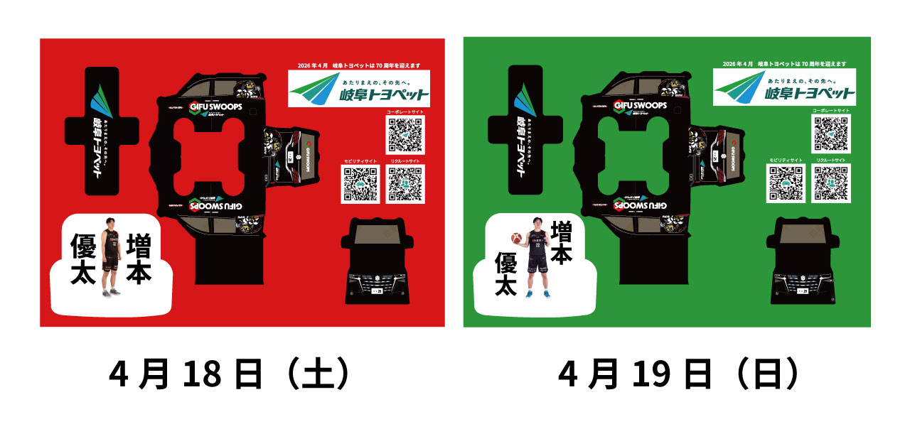 マッチデイパートナーである岐阜トヨペット様のご提供で、各日先着1,500名様に岐阜スゥープスオリジナルデザインのクラフトミニカーをプレゼント!